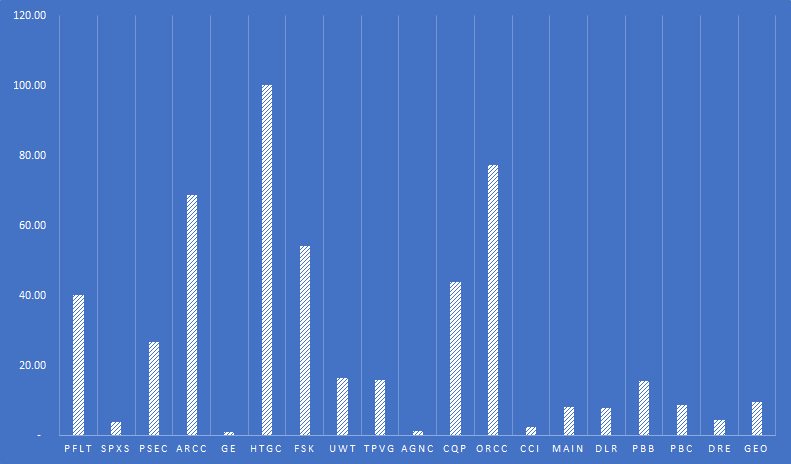 9월에 배당을 지급한 종목은 PFLT(Sector: BDC, 월지급)가 $4.47, AGNC(Sector: Mortgage REIT, 월지급)가 $1.43, MAIN(Sector: BDC, 월지급)가 $4.10, PBB(Sector: BDC Babybond, 분기 지급)와 PBC(Sector: BDC Babybond, 분기지급)가 각각 $7.81, $8.59 지급하였다.