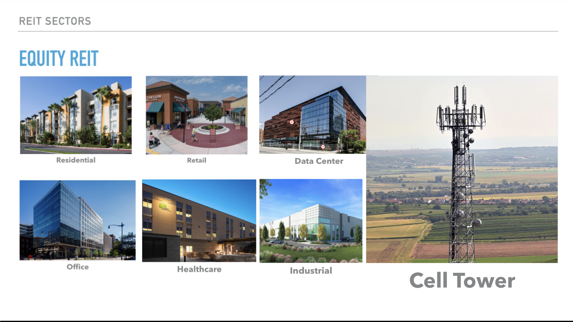 이 섹터에는 다양한 부동산을 운영하는 리츠가 속해 있습니다.
