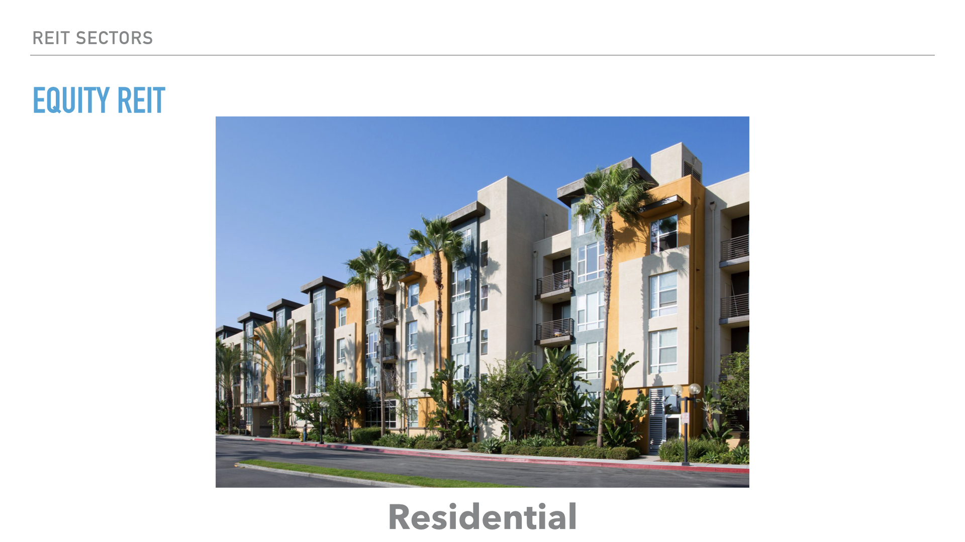 먼저 주택이나, 아파트 등에 투자하는 리츠로는 Residential 리츠가 있습니다.