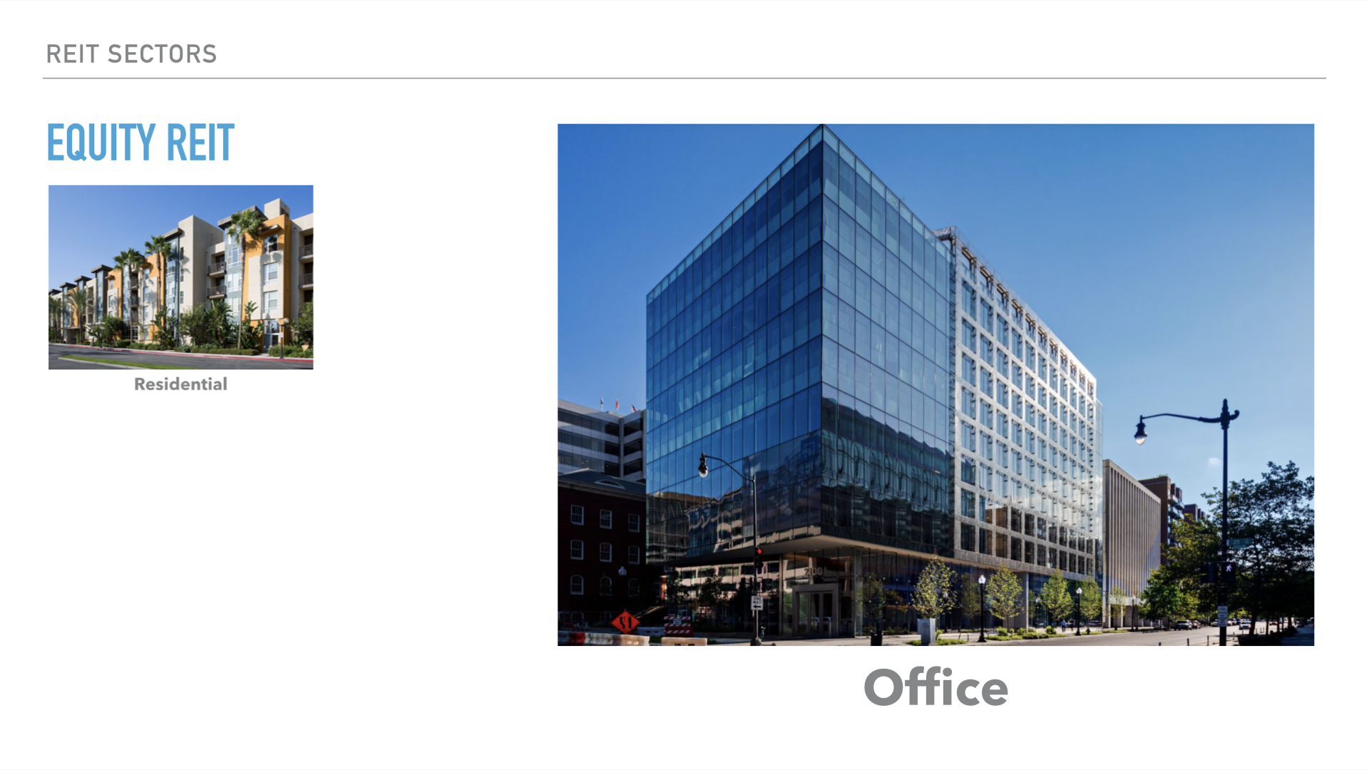 부동산 지분에 투자하는 Equity 리츠와 부동산 대출에 투자하는 Mortgage 리츠가 바로 그것입니다.